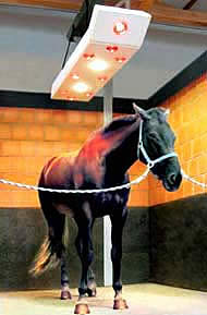 Unsere Kunden stellen beim Besonnen ihrer Pferde durch ein Solarium für Pferde immer höhere Ansprüche an die Funktion und Wirtschaftlichkeit. Themen, die bei den WARENDORFER SOLARANLAGEN seit langem tonangebend sind. Flexible Modellgestaltung, vorbildlicher Bedienkomfort durch nur ein Steuergerät und intelligente Warmluftduschen sind die beeindruckenden Merkmale unserer Pferdesolarien. | ||